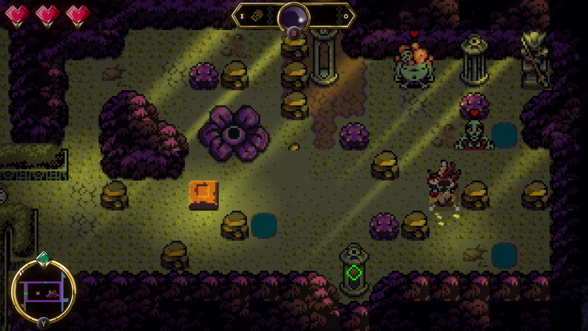 游戏虽然采用俯视角,但地图设计延伸了“类银河恶魔城”内核,整张地图非线性结构,玩家可以反复穿梭于已探索区域,不断获得新技能、装备和关键道具,并解锁新的区域。