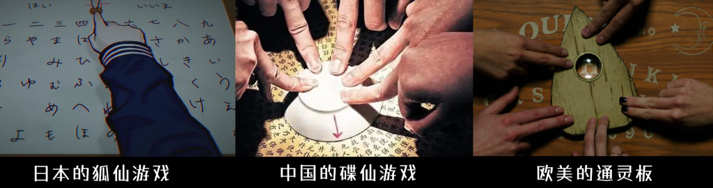 举个例子:仪式中会出现的“神卦”占卜,看起来像鬼片里的碟仙,又像日本的狐仙游戏,也像欧美的通灵板。而类似的仪式,在中国南北朝的扶乩文化中就已经出现。
